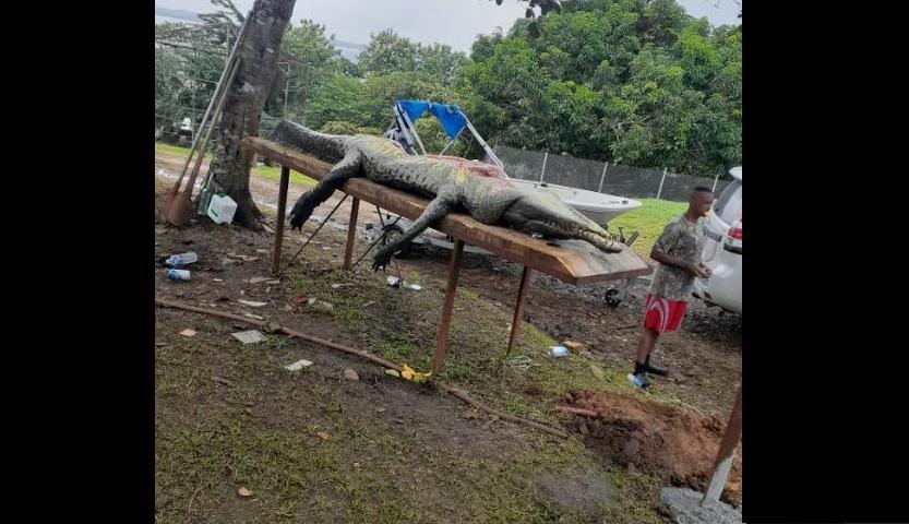 La información que fue dada a a conocer a las 9:00 p.m., por lugareños de la comunidad de Escobal, relatan que cuatro personas estaban buceando, y uno de ellos, no se percató que el reptil, se le estaba acercando de forma sigilosa.