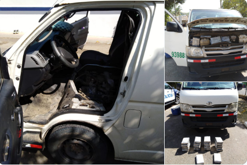 Unos 22 paquetes droga ocultos en el doble fondo de un auto, tipo panel ,color blanco, fueron incautados mediante un retén policial, ubicado en el puente Bayano.