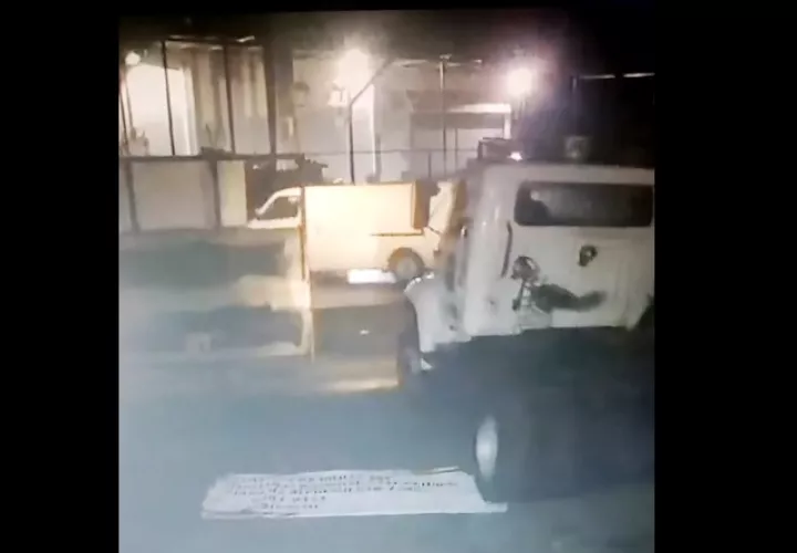 Una cámara de videovigilancia registró el robo, que ocurrió a las 11:17 de la noche cuando la mula sale del patio, y al parecer es escoltada por un panel pequeño de color blanco.