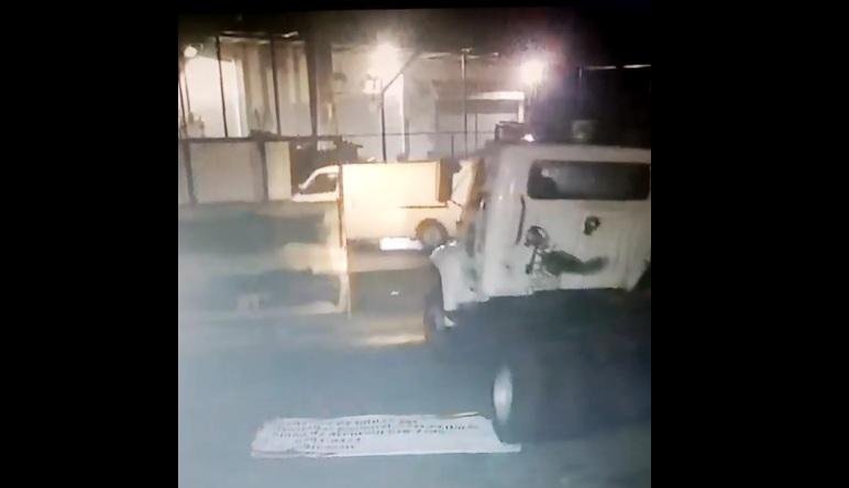 Una cámara de videovigilancia registró el robo, que ocurrió a las 11:17 de la noche cuando la mula sale del patio, y al parecer es escoltada por un panel pequeño de color blanco.