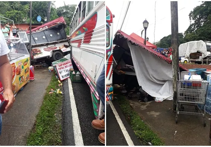 A esta persona le cayó encima del pie derecho parte de la estructura, donde iba a vender hot dog y otras comidas similares, durante la fiesta religiosa del Cristo Negro de Portobelo, cuando en bus de la ruta Portobelo-Colón chocó parte del kiosco que se vino abajo.