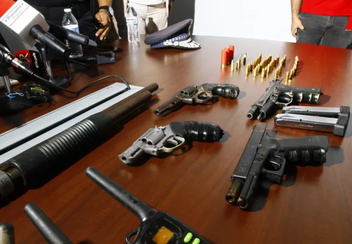 Murgas explicó que la entrega consistió en 2 pistolas, 2 revólveres, una escopeta, aproximadamente 50 municiones y 7 radios de comunicación.