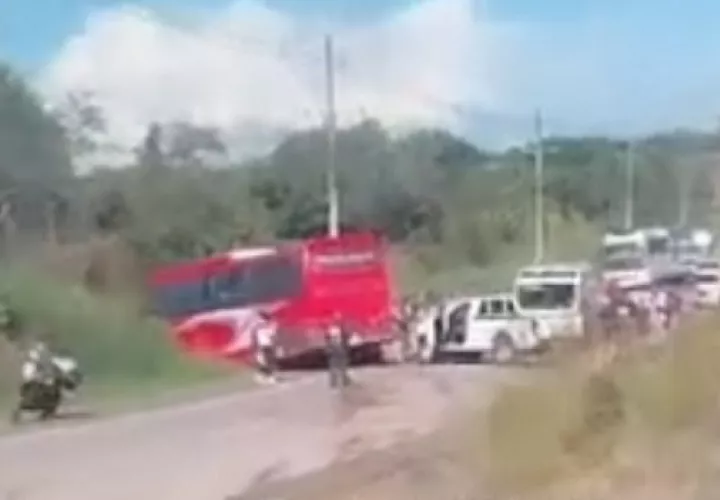 Panamá- Los pasajeros de un autobús de la ruta Chitré-Panamá pasaron un susto de vida cuando el vehículo se vio involucrado en una triple colisión ocurrida la tarde de este viernes en la vía Interamericana, a la altura de Santa Clara, distrito de Antón, Coclé.