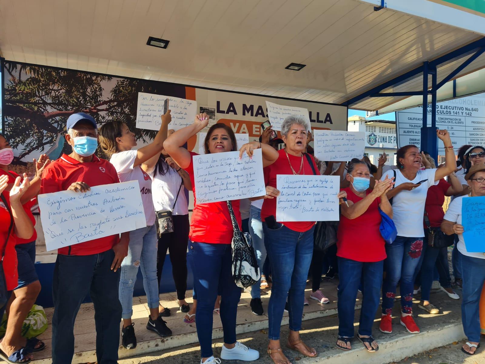 Tras los enfrentamientos en la cárcel La Joya que dejaron saldo de un policía muerto, familiares de privados de libertad de Chitré, que fueron trasladados hace varios meses a dicha cárcel, protestaron reclamando seguridad para ellos.