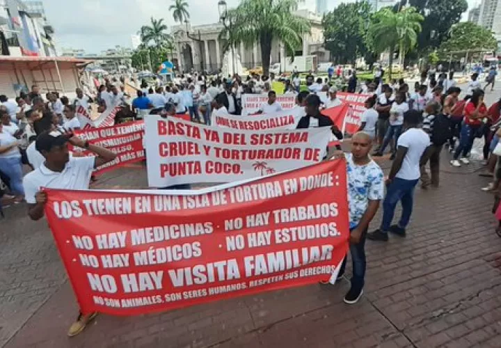 Familiares de los detenidos en el centro penitenciario de Punta Coco marcharon hoy, martes, hacia la Presidencia de la República, ubicada en San Felipe, para exigir que se respeten los derechos humanos.