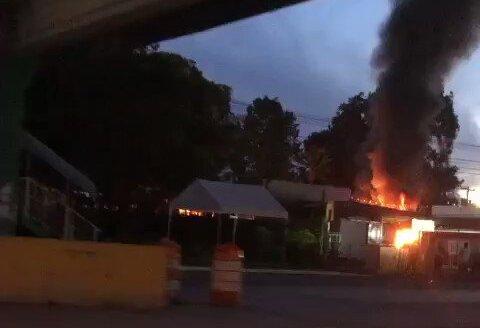 El vigilante de la plaza "La Parada" dijo que estaba dormido y el ruido lo despertó y observó cómo el fuego consumía el food truck.