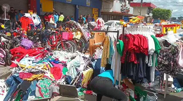 Personal de los comercios trataron de salvar las ropas y otros tipo de mercancías, pero, los delincuentes aprovecharon para llevarse algunas piezas.
