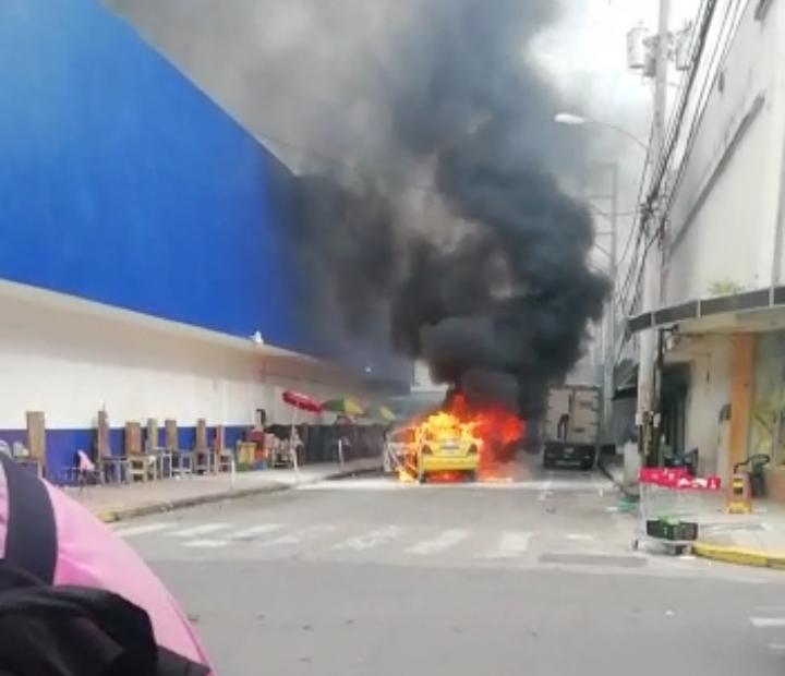 Un auto de servicio selectivo (taxi) fue consumido por las llamas la tarde de hoy, sábado en las proximidades del parque Miguel de Cervantes Saavedra, causando alarma entre las personas que estaban en las inmediaciones.