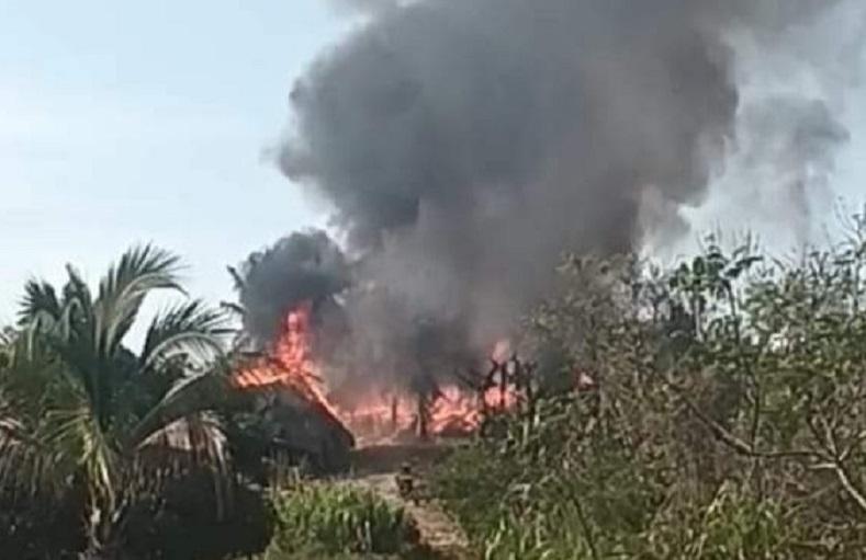 Según se informó, ayer los lugareños no pudieron controlar las llamas, sino hasta después de que ya se había propagado a las cuatro viviendas edificas con madera y pencas de palma.