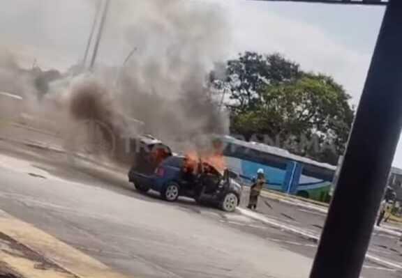 El conductor logró salir a tiempo cuando el incendio comenzó en el área del motor y se propagó hacia la parte interna.