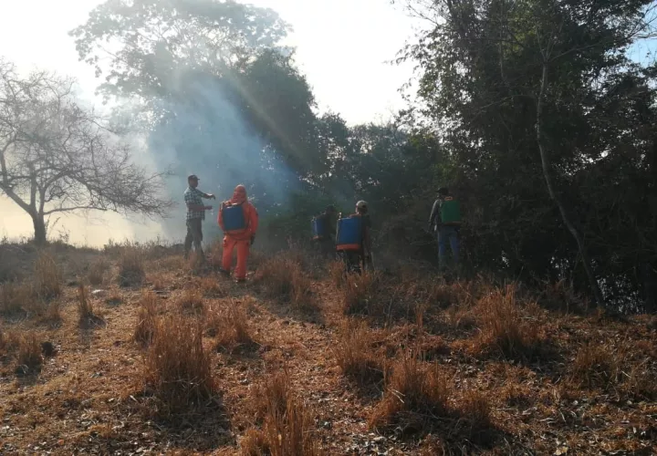 El comandante del Cuerpo de Bomberos de David, Gonzalo Chang, confirmó que los camisas rojas se han sumado al equipo de la FTC para ayudar en las labores para apagar el fuego en la Emplanada de Chorcha.