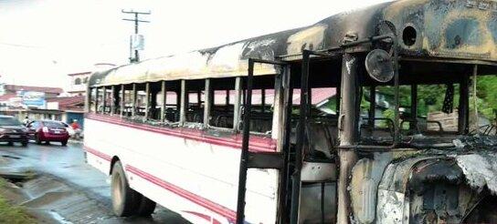 Un bus quedó hecho cenizas. Este colectivo, dedicado al servicio de transporte privado de trabajadores bananeros, se incendió en la avenida de la finca 12 de Changuinola, provincia de Bocas del Toro.