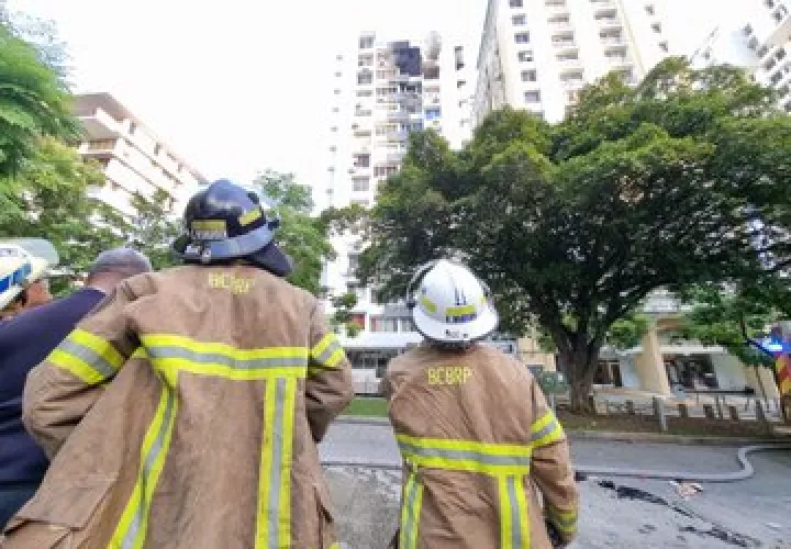 Bomberos atienden incendio en edificio El Cangrejo, ubicado en Vía Argentina.