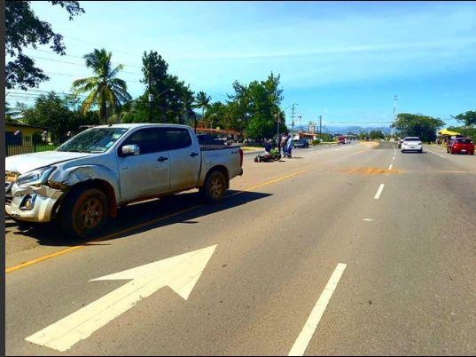 Una fuerte colisión, entre un auto tipo pick up y un motorizado se registró a eso de las 2:00 p.m. cerca del cuartel de la Policía Nacional de Natá de los Caballeros, en la provincia de Coclé.