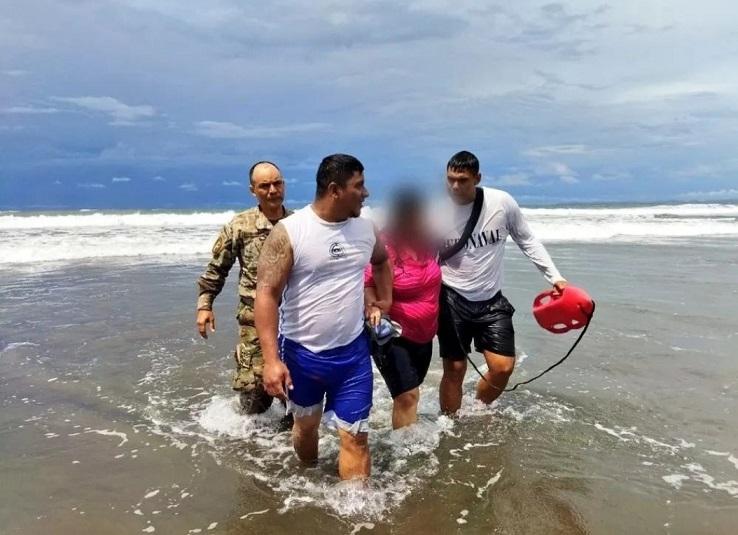 Las unidades del Senan observaron que la mujer de 45 años de edad estaba siendo arrastrada por una ola, por lo que actuaron logrando sacarla del agua con vida.