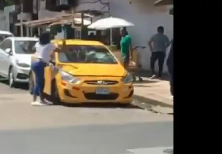 La furia de una mujer fue captada en un video. La dama con una varilla golpea y rompen el parabrisas de un vehículo-taxi, que estaba estacionado en el populoso Mercadito de Calidonia.