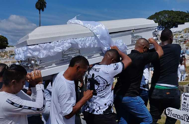 La gente se apoderó de la avenida 12 de octubre para luego pasar por el gimnasio de Pueblo Nuevo. Con el ataúd al hombro y entre canciones, música y bailes, el cortejo se dirigió al cementerio de Pueblo Nuevo y era tanto el cariño hacia el difunto que muchos rompían en llanto.