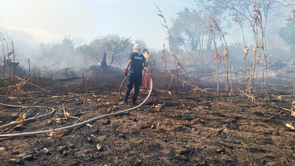 El maizal fue consumido en su totalidad por las llamas, la tarde del lunes, a pesar de los esfuerzos para controlarlo.