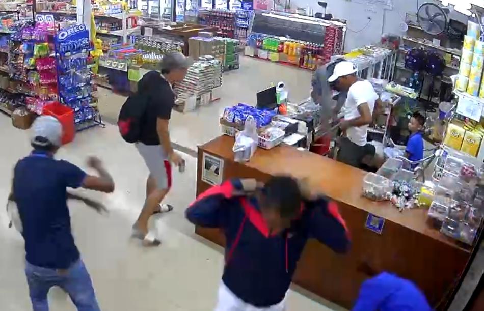 Uno de los delincuentes saltó al mostrador y golpeó al comerciante, incluso apuntándole en la cabeza con un arma de fuego para exigirle todo el dinero de la venta del día.