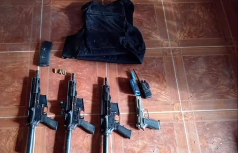 En la residencia inspeccionada, se encontraron varias armas de guerra, radios portátiles y otros indicios.