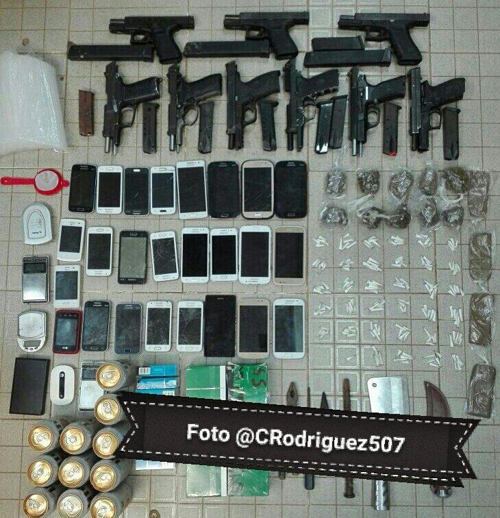 Panamá- Nueve (9) pistolas con su respectivo cargador, 25 teléfonos celulares, cuchillos, cigarrillos, cervezas, drogas (marihuana y cocaína) es parte de lo descubierto por custodios y efectivos de la Policía Nacional en el pabellón 5 de la cárcel La Joyita, ubicada en Pacora.