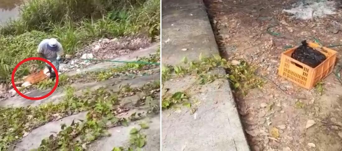 La bolsa negra se halló en el río cercano a La Morelo, en Belén, muy cerca donde un orate encontró a la mujer picada, este martes.