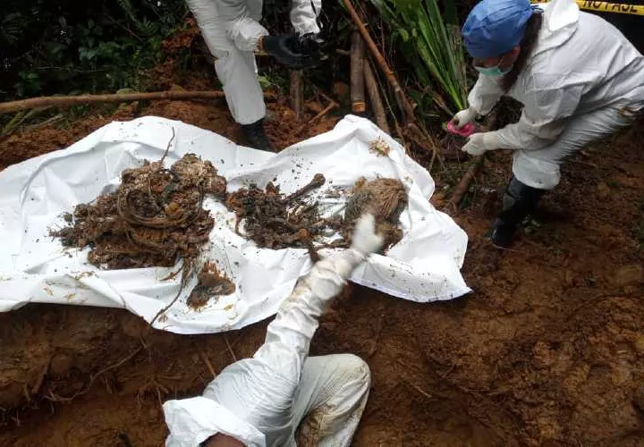 Desde el domingo, unidades del Servicio Nacional de Fronteras y el Ministerio Público, se movilizaron hasta el área norte de esta comarca, próximo a la cabecera del río Chucará, donde acordonaron e iniciaron con la excavación hasta exhumar los restos que estaban enterrados.