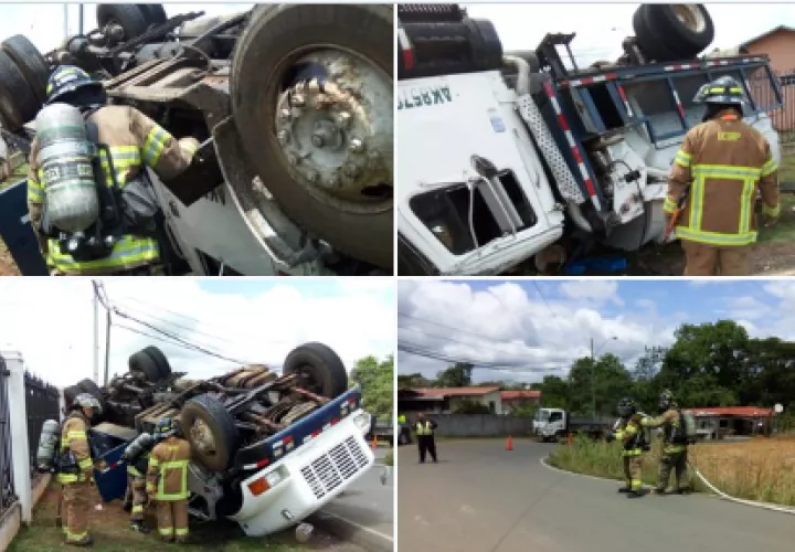 Un camión cisterna se volcó en la vía a la altura de Villa Lorena, David, provincia de Chiriquí, en horas de la mañana de hoy.