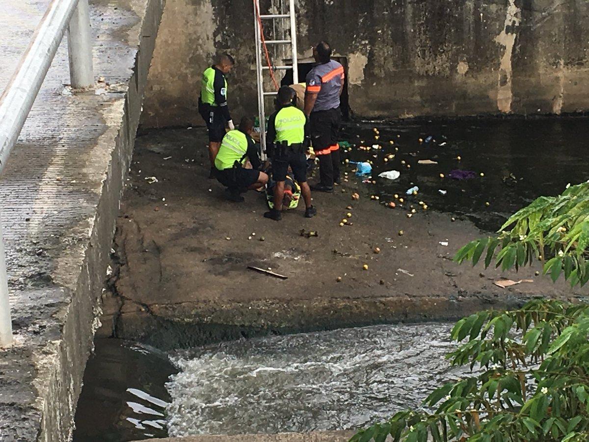 Un hombre cayó del puente peatonal de Curundú, cerca del Mercado Agrícola Central, en horas de la tarde de hoy, jueves.