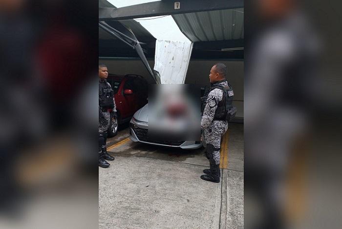 El cuerpo impactó contra un sedán de color gris que se encontraba en el área de estacionamientos del edificio y quedó boca arriba, tras atravesar el techo del vehículo.