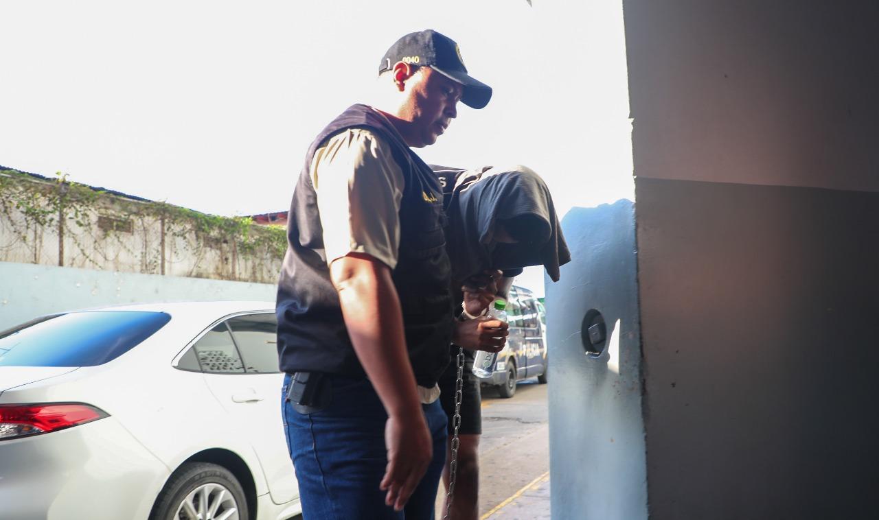 El sujeto, R.G. Machado, de 26 años, llegó custodiado por funcionarios de la DIJ, su rostro estaba cubierto con un suéter, y encadenado de manos y pies.