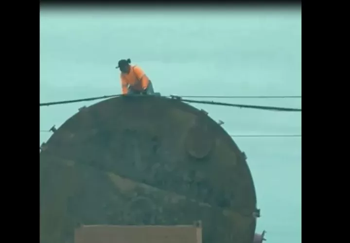 Del impacto el hombre se desplomó en la parte superior de este tanque que iba a ingresar a uno de los puertos de contenedores que opera en la zona.