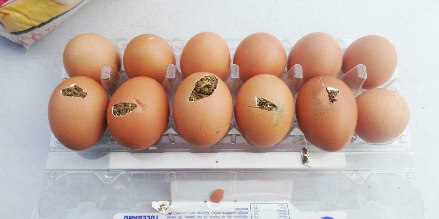 La información fue confirmada por la Policía Nacional, a través de su cuenta de Twitter en la que aparece una imagen de la docena de huevos que en su interior lo que parece hierba.