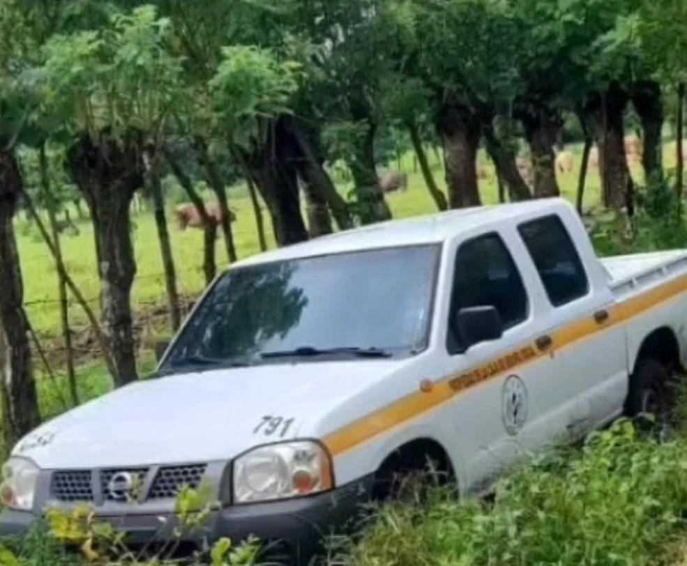 El reporte de las autoridades indica que el vehículo tipo pick up con cinta amarilla propiedad de la CSS hurtado en el distrito de Boquete, fue ubicado en el distrito de Alanje en medio de un herbazal.