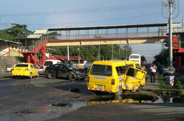 Una persona con golpes superficiales fue uno de los resultados del accidente entre un bus colegial y un vehículo tipo sedán, ayer, viernes, en la carretera Panamá-Colón.