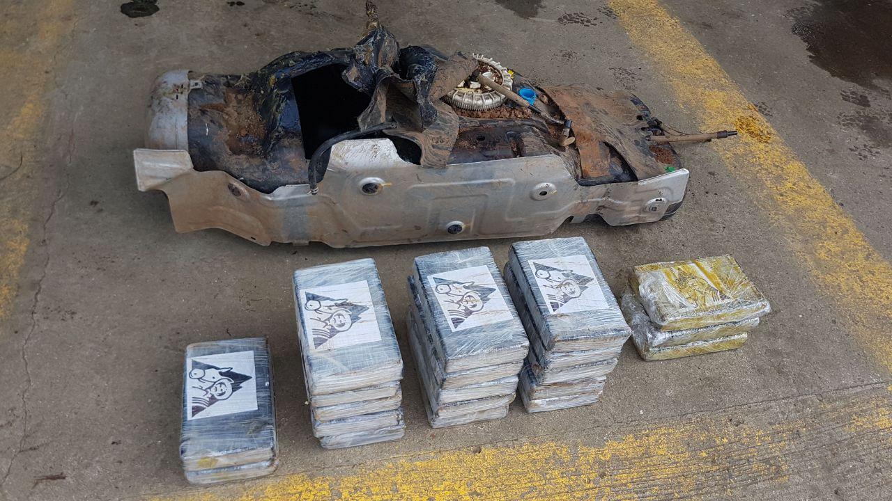 En esta revisión en presencia del conductor,ciudadano panameño, se logra ubicar en un doble fondo 20 paquetes de supuesta droga.