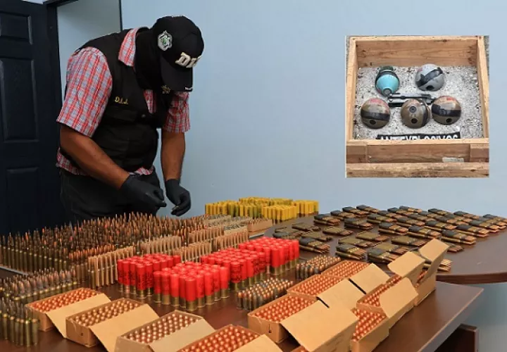 Panamá- Un caleto con 5 mil 330 municiones de diversos calibres y cinco granadas fue ubicado por la Policía Nacional (PN) y funcionarios del Ministerio Público (MP) en un lote baldío, ubicado en el sector de La Constancia, distrito de Arraiján, provincia de Panamá Oeste.