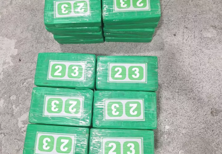 La droga estaban dentro de dos maletas color negro, una grande y otra mediana, dentro de ellas habían paquetes forrados en color verde que en su parte superior tenia los números 23.