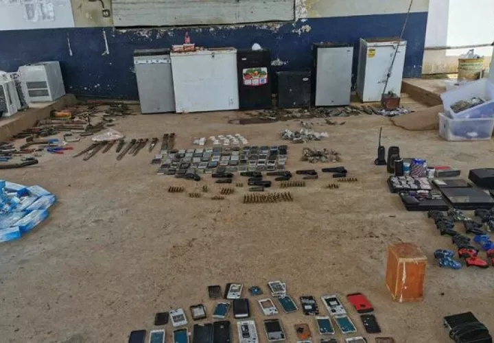 Además se incautaron seis cargadores de armas de fuego, 200 municiones, múltiples celulares, droga que se presume sean marihuana y cocaína, chips de celulares, artículos electrónicos, refrigeradoras y platinas.