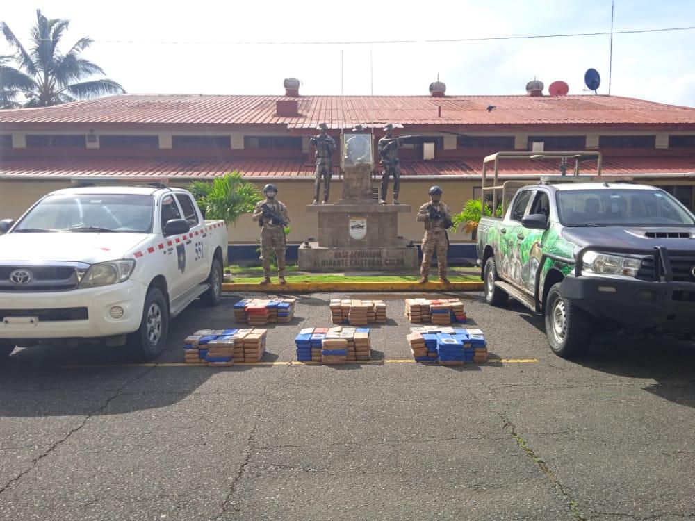 Unidades aeronavales de la 4ta Región, incautaron 330 paquetes de supuesta sustancia ilícita, en la modalidad de carga contenerizada, en una operación llevada a cabo en una terminal portuaria de la zona Atlántica, provincia de Colón.