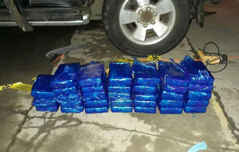 Por este delito de tráfico de droga hay 4 personas detenidas, todos nacionales; la retención de dos vehículos, tipo camioneta; un arma de fuego, varios cargadores y municiones sin detonar.