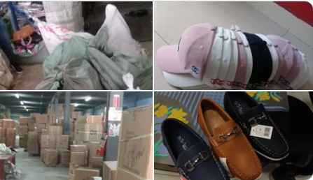 Zapatos, gorras y carteras están entre la mercancía decomisada.