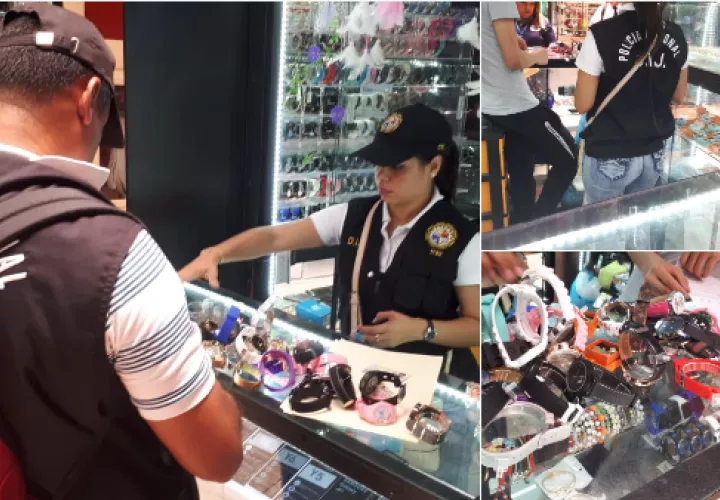 La Fiscalía de Propiedad Intelectual y la Dirección de Investigación Judicial (DIJ) decomisaron miles de artículos falsificados: relojes, cargadores de celulares, cobertores para teléfonos celulares, audífonos, prendas y otros.