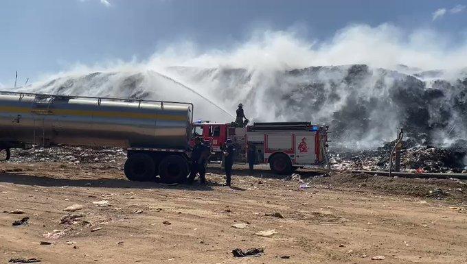 Los camisas rojas utilizan carros cisternas del IDAAN, vehículos tanqueros y retroexcavadoras para apagar totalmente el incendio, con el apoyo de Interaseo Urbalia Panamá, administradora del relleno sanitario.