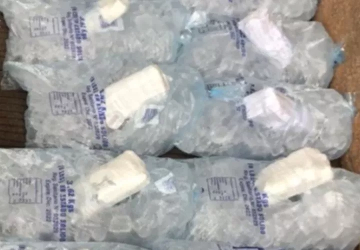 Los aprehendidos fueron trabajadores de una empresa distribuidora de hielo, quienes dentro de 18 bolsas de hielo, embalaron 22 envoltorios, forrados con cinta adhesiva de color transparente, en la que iba la sustancia ilícita, así como otro de color transparente con dinero en efectivo.