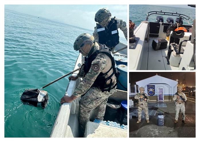 Fue durante un patrullaje de rutina que unidades del Servicio Nacional Aeronaval (SENAN) visualizaron el paquete de gran tamaño flotando en el mar.