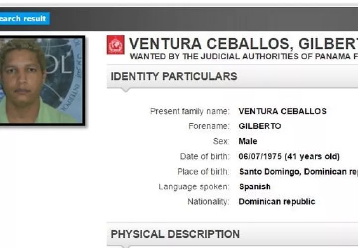 Panamá- Interpol acogió la solicitud del Segundo Tribunal de Justicia de Panamá de emitir una alerta roja contra el dominicano Gilberto Ventura Ceballos, implicado en el secuestro y homicidio de cinco panameños.