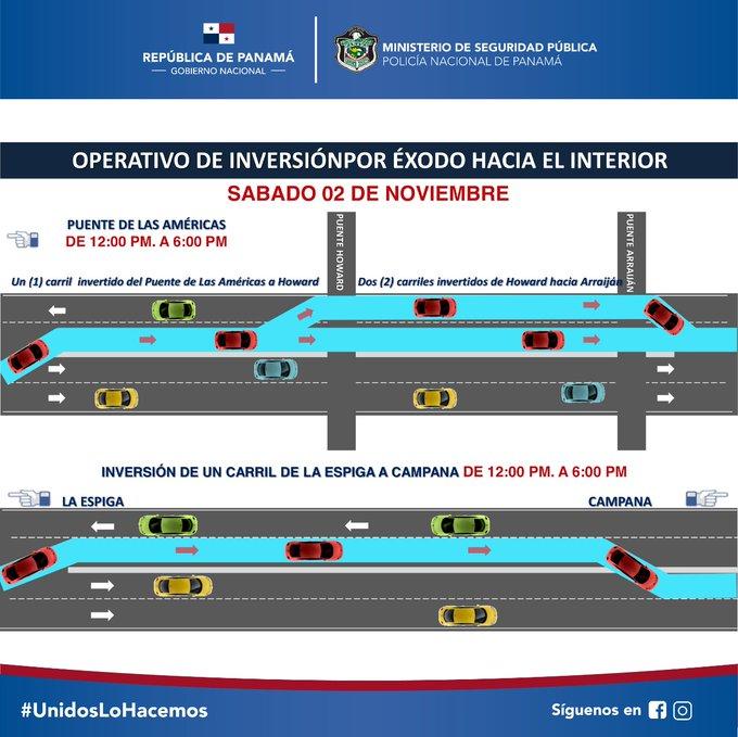 La Policía de Tránsito accionará mañana, sábado, un operativo de inversión de carriles con el objetivo de agilizar el tráfico vehicular de los panameños que se dirigirán hacia el interior de la República por motivo de las fiestas patrias.