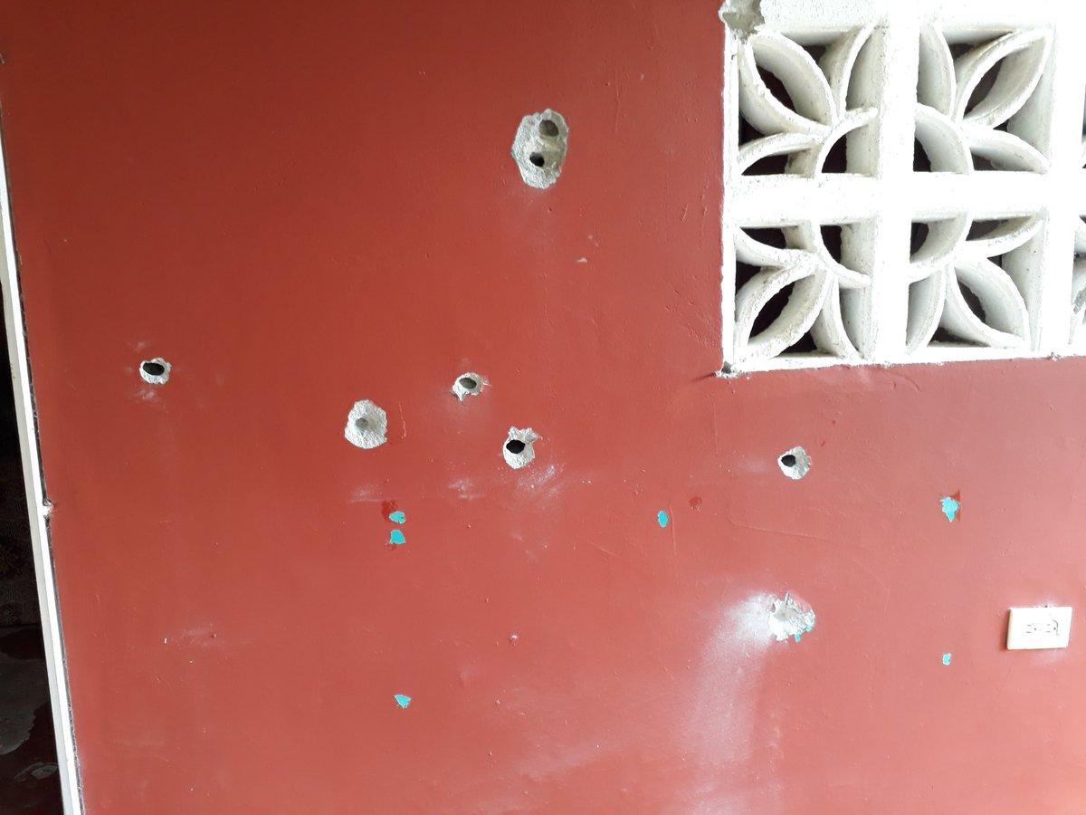 Los hechos se dieron a las 3:15 a.m. ayer, domingo, en el distrito de La Chorrera, corregimiento Barrio Colón, en el sector de El Chorro, cuando el dueño de una residencia manifestó mediante denuncia que al llegar a su casa después de asistir a una actividad familiar se acostó a dormir junto a su esposa e hijos, pero, se despertaron al escuchar unas detonaciones con arma de fuego por lo que procedió a salir de la casa y oír el ruido de un vehículo en huida, al revisar su inmueble observó varios impactos de bala en la pared, puertas y casquillos en el piso.