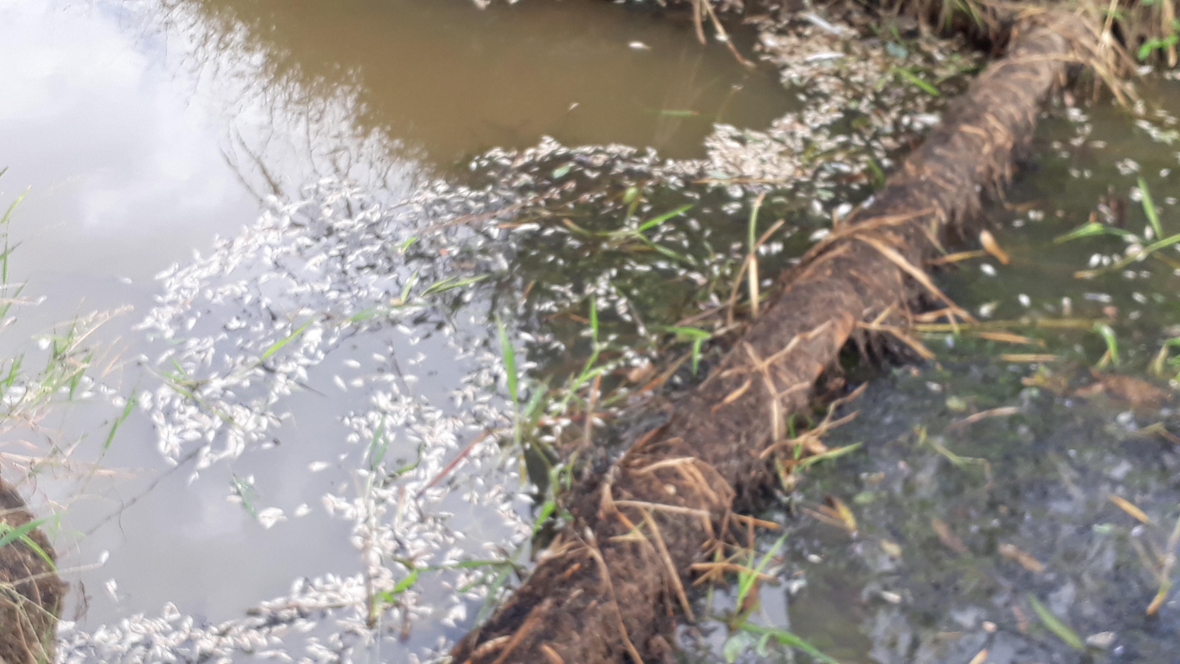 Gran cantidad de peces muertos, de diferentes especies, fueron encontrados en un canal de riego, que atraviesa una finca privada, a la entrada de la comunidad de El Rincón de Santa María, en Herrera.